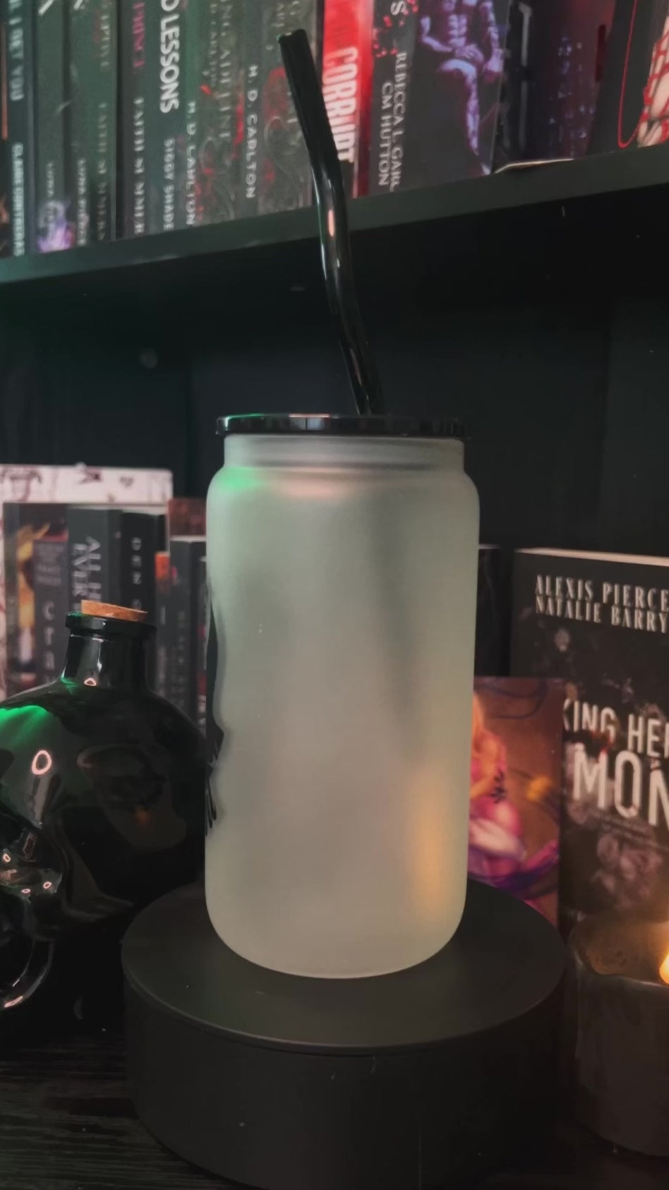 Book Baddie Frosted 16oz Tumbler with black wavy straw